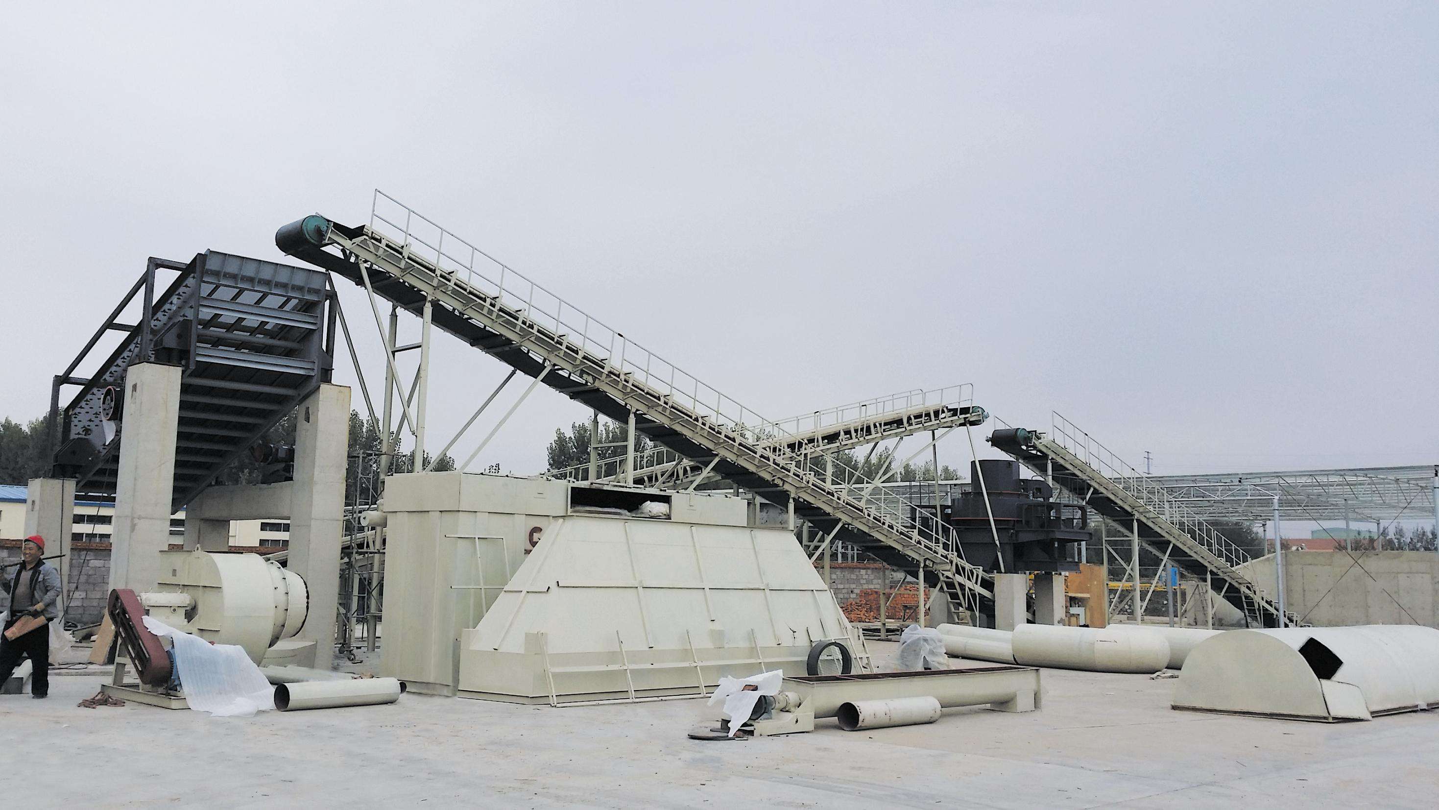 正在搭建的石英石制砂生產線