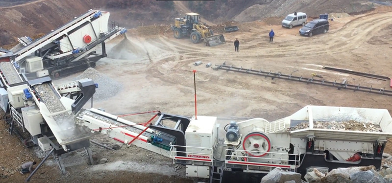 配置:履帶移動鄂式破碎機(jī)+移動圓錐破碎機(jī)+移動制砂機(jī)(三機(jī)組)