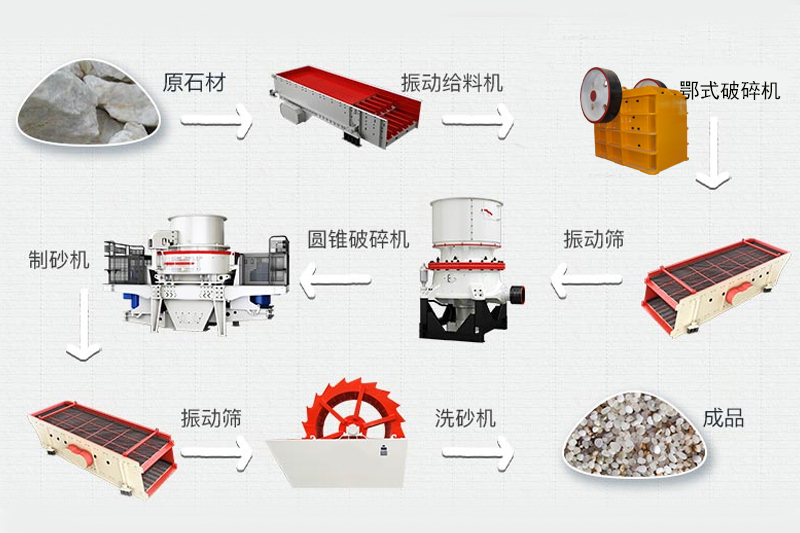 石英石制砂生產(chǎn)線主要分為粗碎、中碎、篩分和制砂等流程,可根據(jù)用料需求調(diào)整出料砂子粒度,出料可以控制在5mm以內(nèi)。由于其石粉含量較高且物料硬度較大,需要選擇的抗壓強度大且密封性較好的設(shè)備。