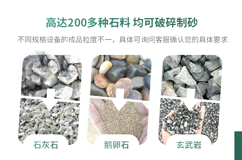 同一設(shè)備不同型號的進(jìn)出料粒度不同,可以按照成品需求選擇合適的型號,可以提高工作效率和成砂率。