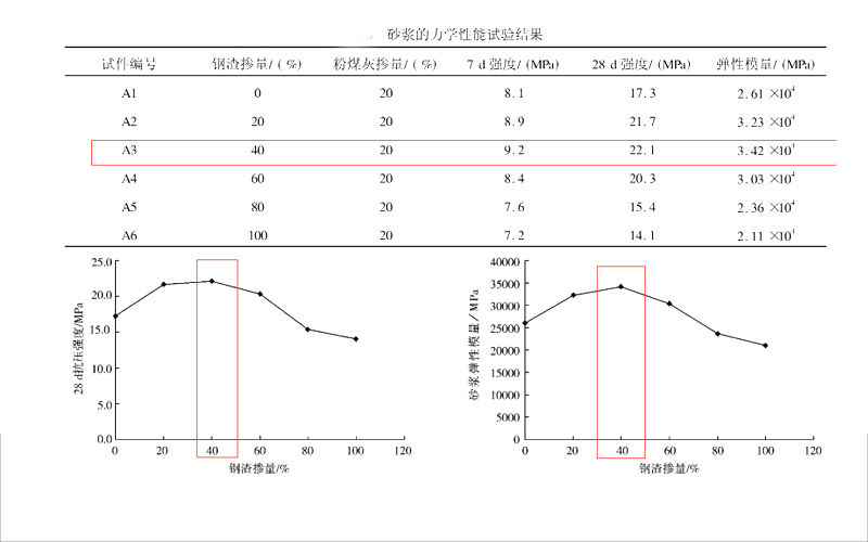 2、鋼渣可以提高砂漿的強度,隨著鋼渣含量的不斷增加,砂漿中的骨料含量越來越高,砂漿的粘合性也隨之變低,進而影響其抗壓強度。砂漿的強度同樣是隨著鋼渣含量不斷增加而呈現先增加后減少的趨勢,據數據顯示,當鋼渣含量為砂漿總量的百分之四十時,砂漿的抗壓強度更高。